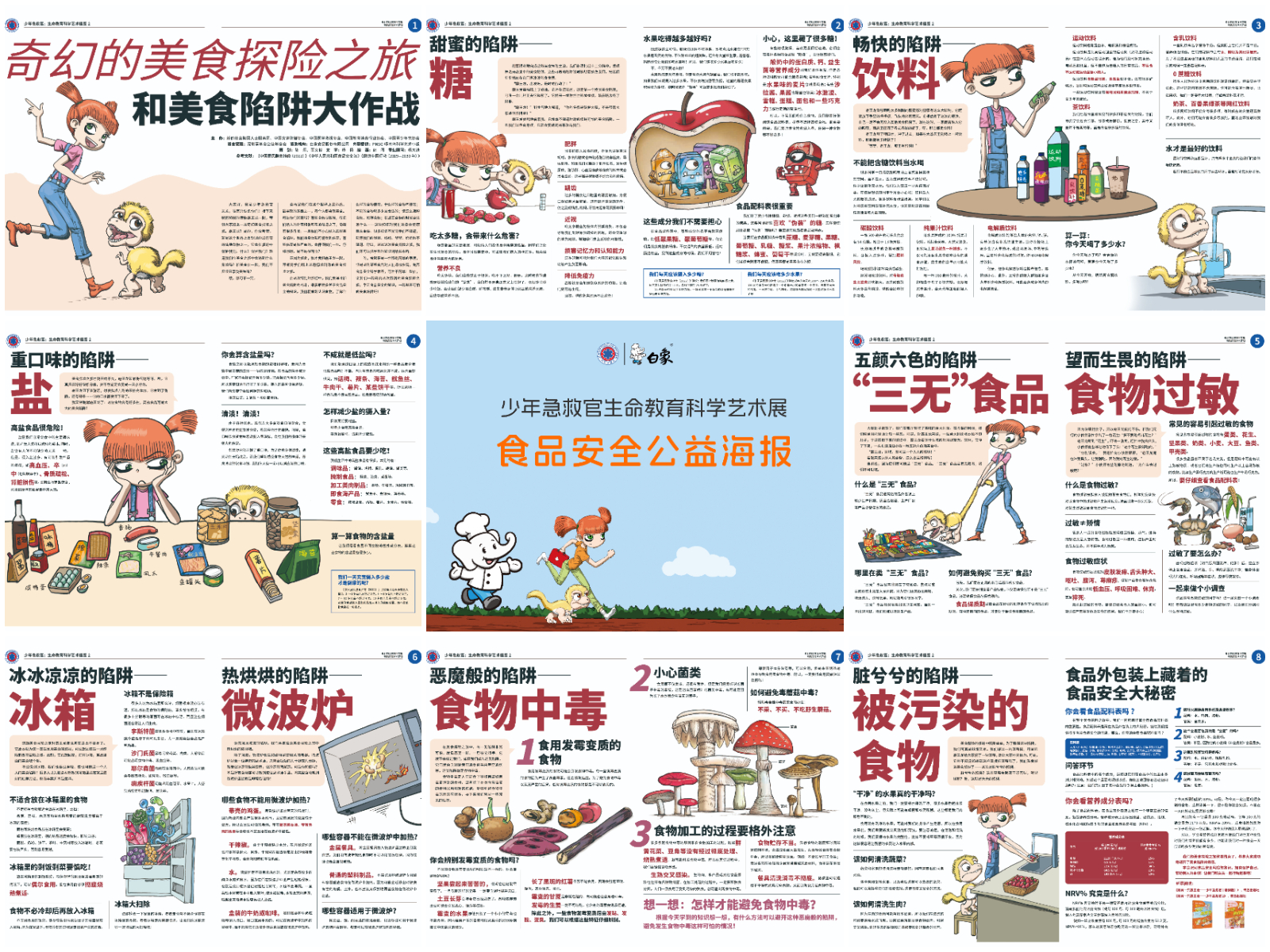 全国跨越1708个地县申领了少年急救官生命教育科学艺术展‘食物平安’公益海报,”